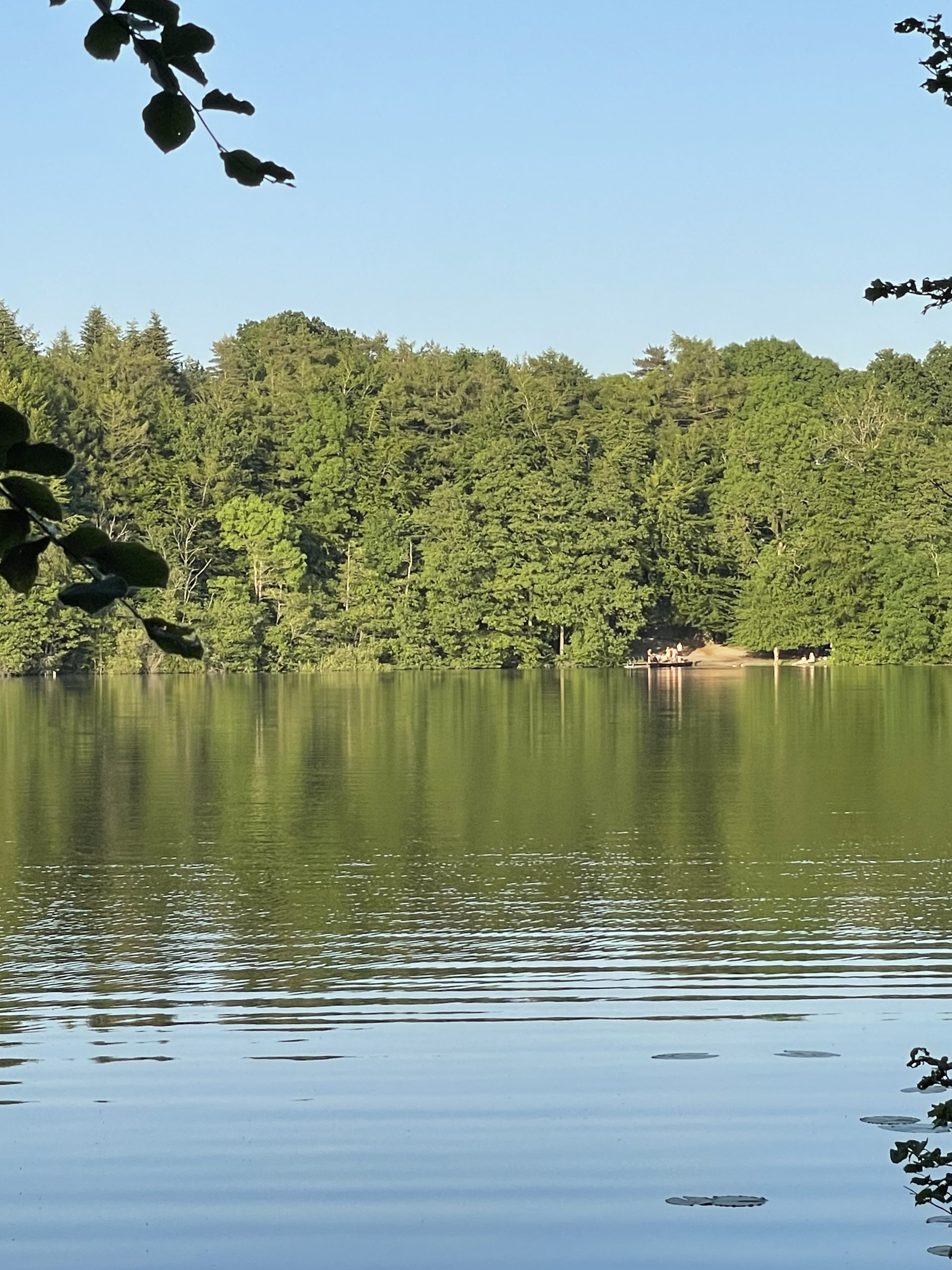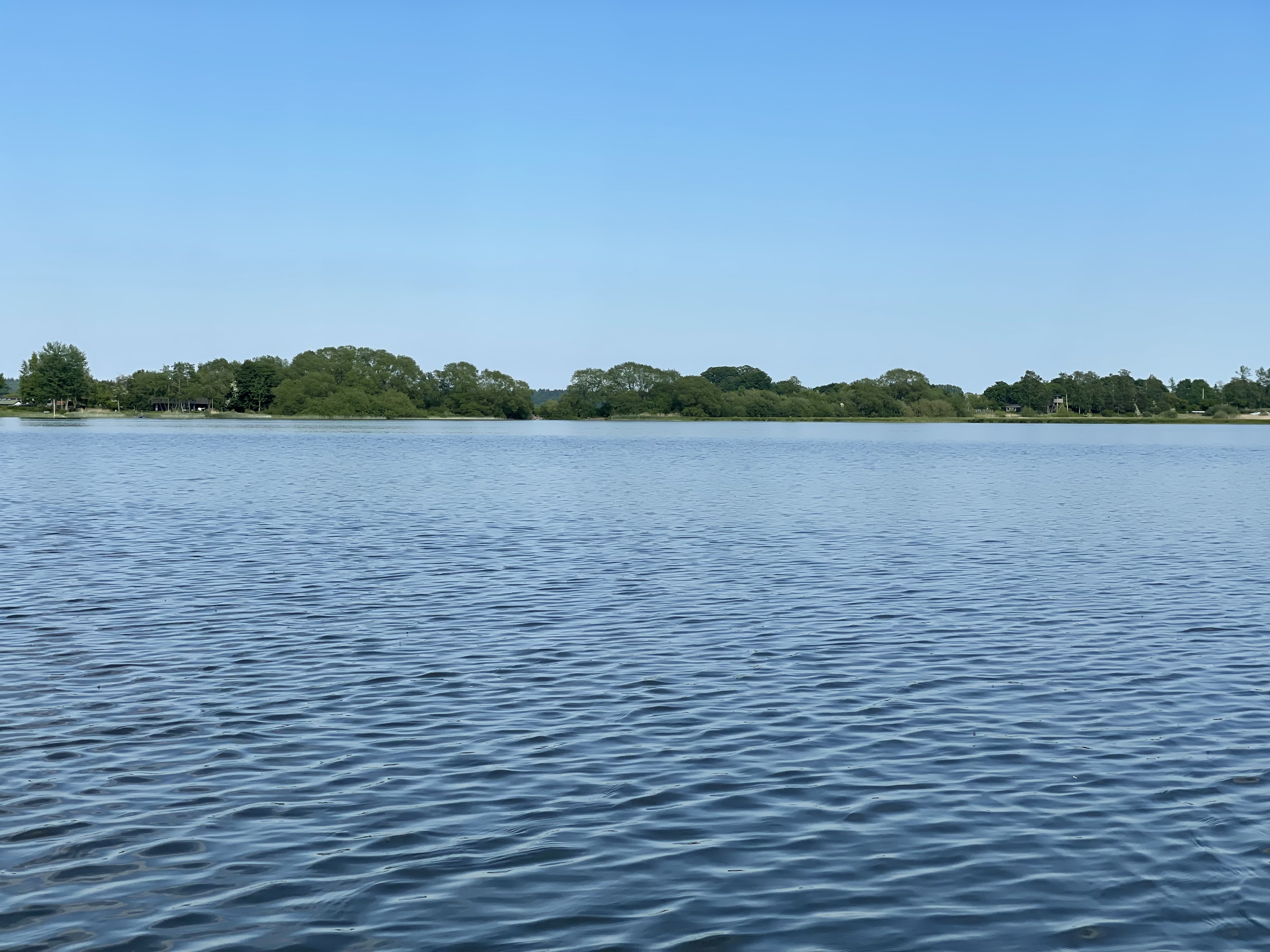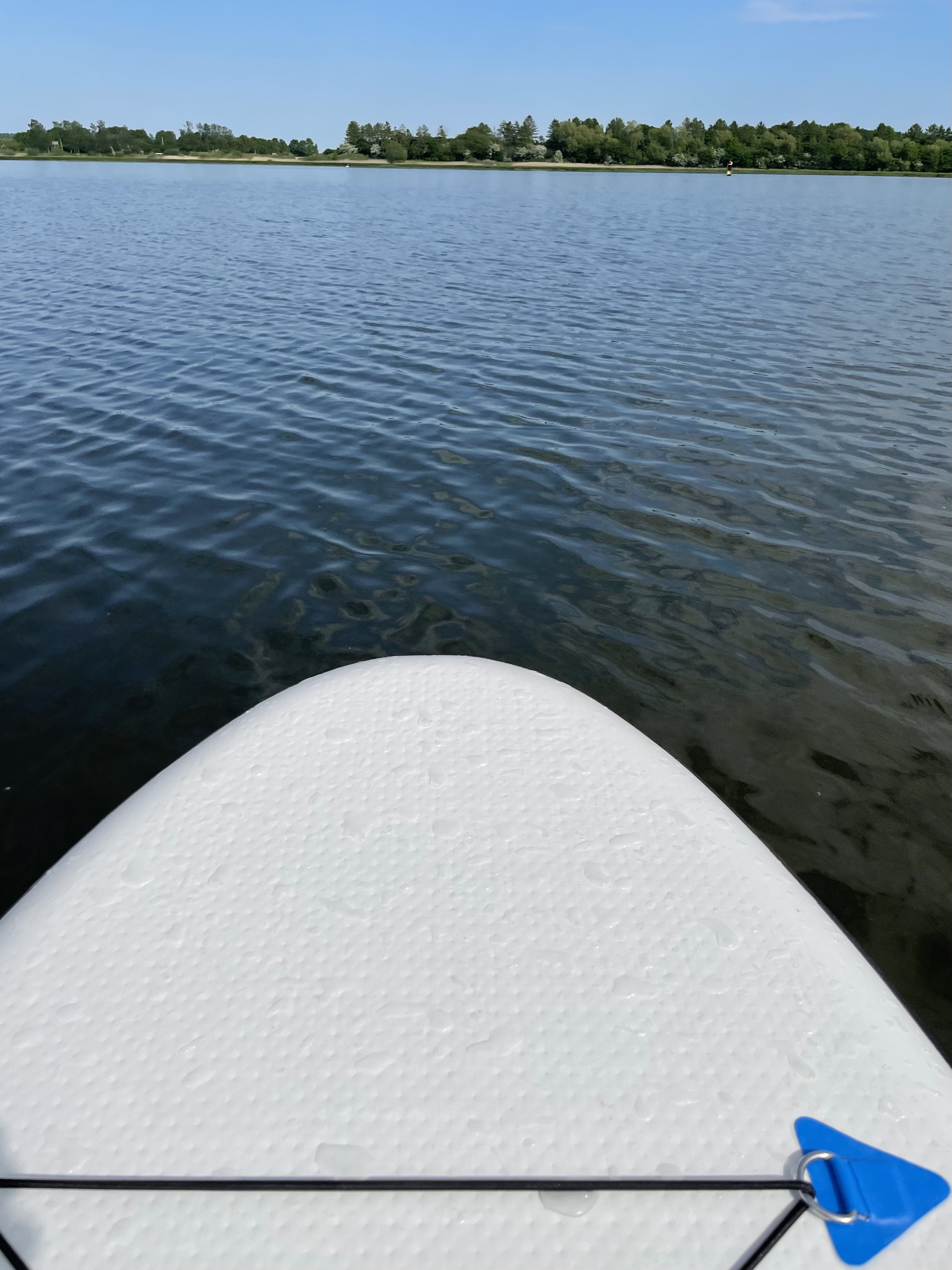 Vi startede med at øve os ved Hvidsø i Jystrup. Der er en supergod badebro og en god stor sø, hvor man kan padle rundt i fredelige omgivelser. Søen er omgivet af træer og åkanderne skinner så fint i vandspejlet.