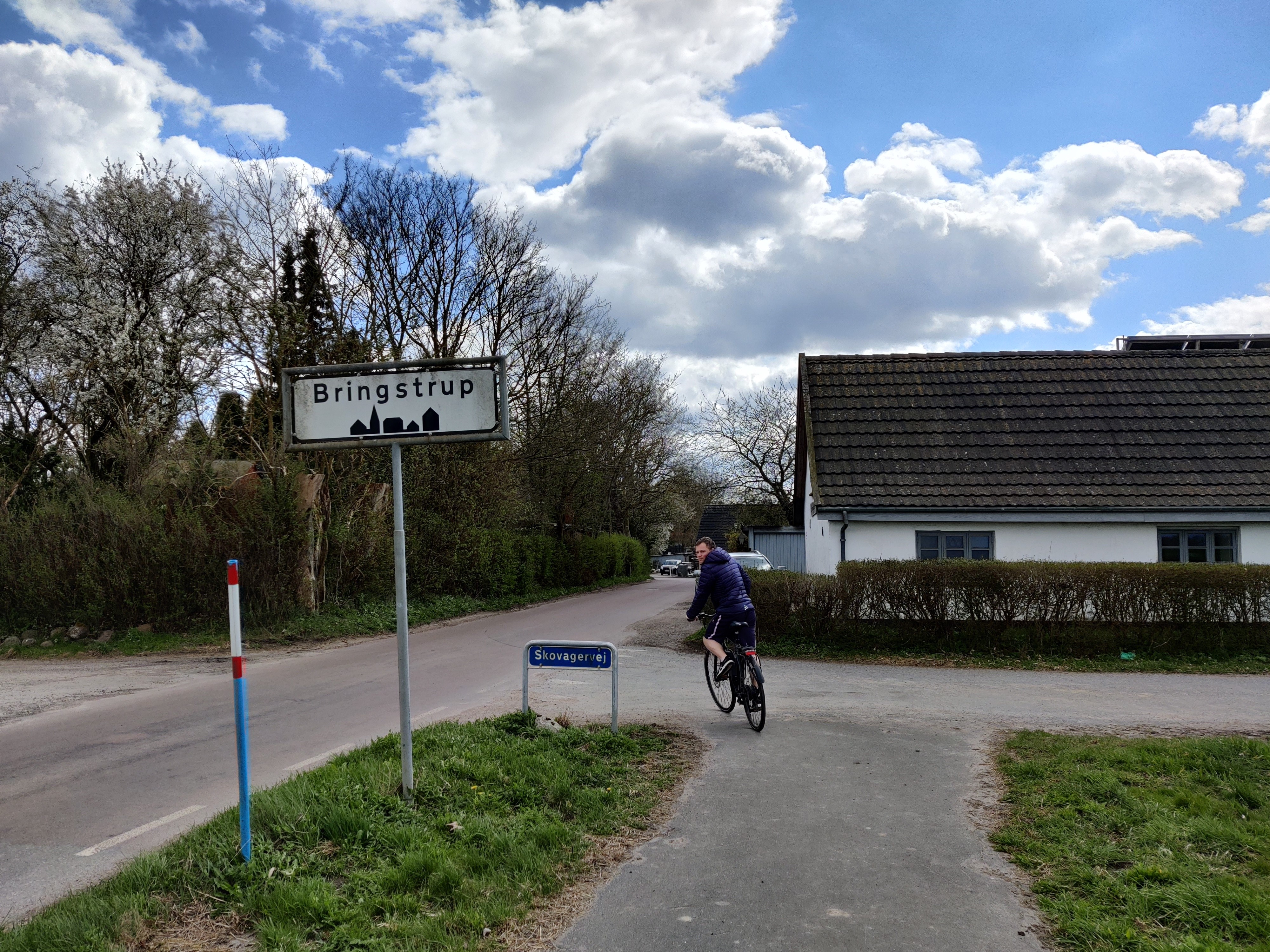 Denne gang blev det til en kortere tur, som passede ind imellem hverdagens pligter. Et øjeblik, hvor vi havde 15 minutter, som blev til en tur igennem Bringstrup, forbi kirken, et hurtigt stop ved loppeboden og hjem igen.